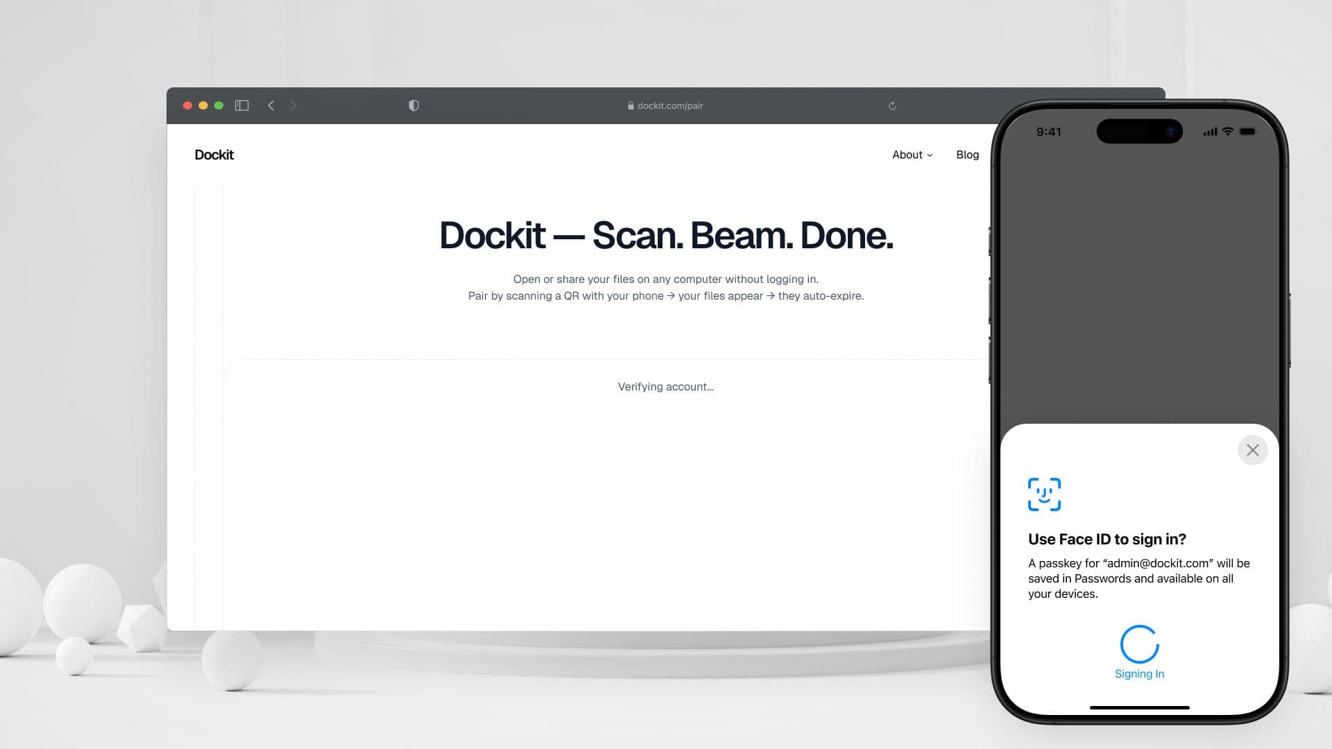 Open files on any computer without logging in. Just scan a QR with your phone and your files appear. No passwords. No USB sticks.